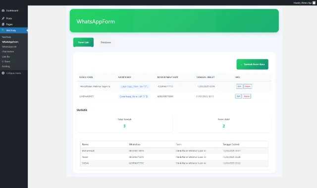 Buat form cantik & profesional dalam hitungan menit. Data leads otomatis tersimpan ke dashboard wordpress Anda