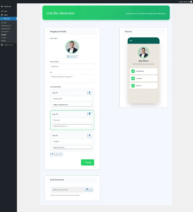 Bikin Form WhatsApp Unik, Chat Button Keren, Link Bio Premium, Countdown Timer, SmartLink Generator & Katalog Whatsapp di website. Semua dalam satu tempat!.