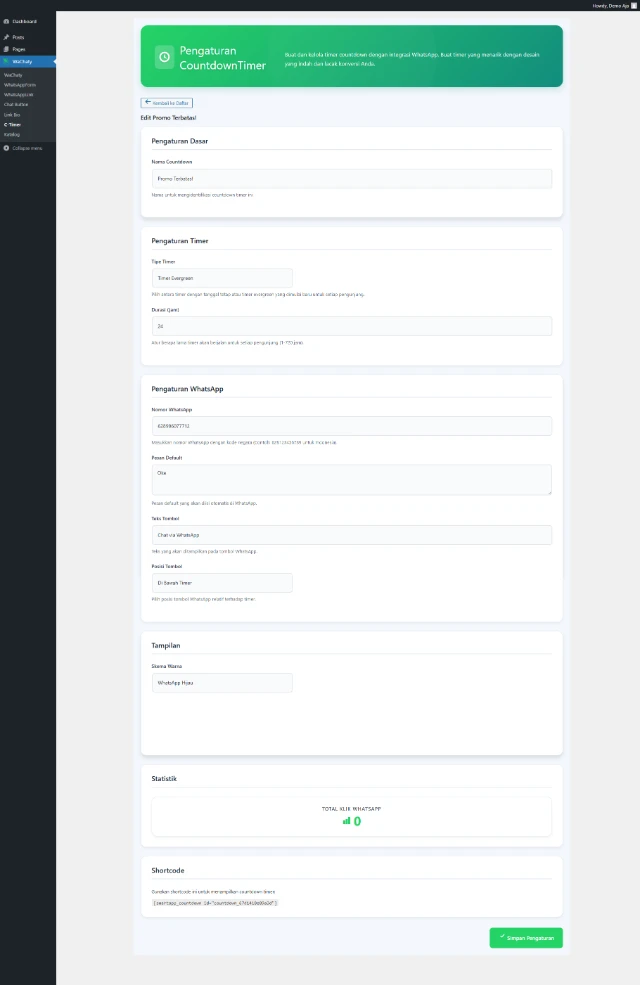 Timer countdown yang bikin urgent banget! Auto-reset buat flash sale berulang, design yang bikin mata melotot, plus integrasi WA buat boost penjualan. Promomu? Laris manis!